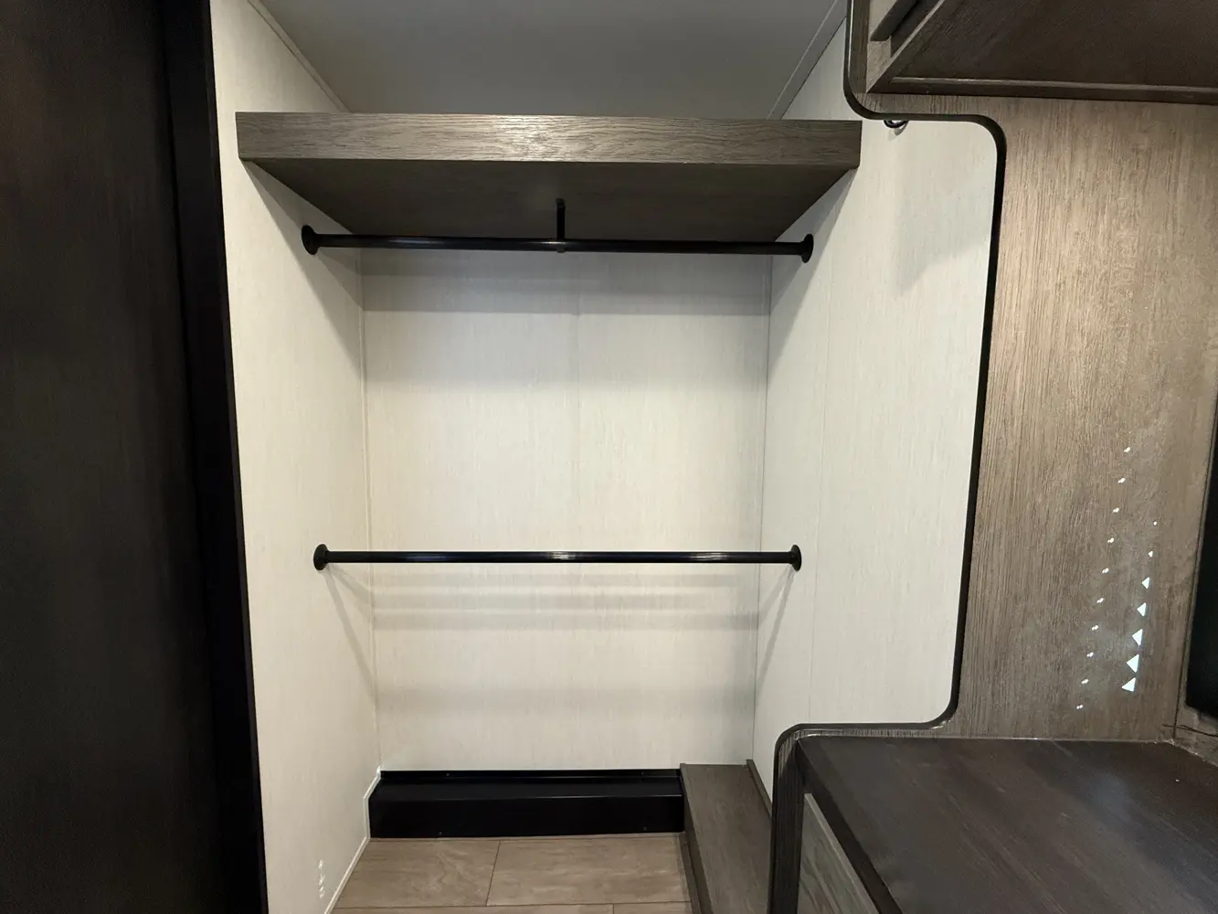 • Super-Stor Bedroom Closet w/ Full Depth Hanging Space, Drawers,