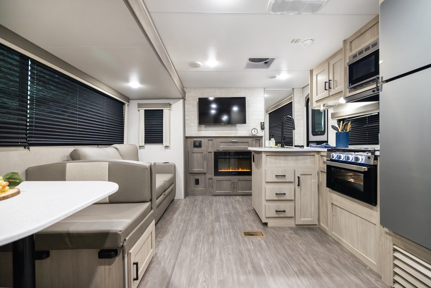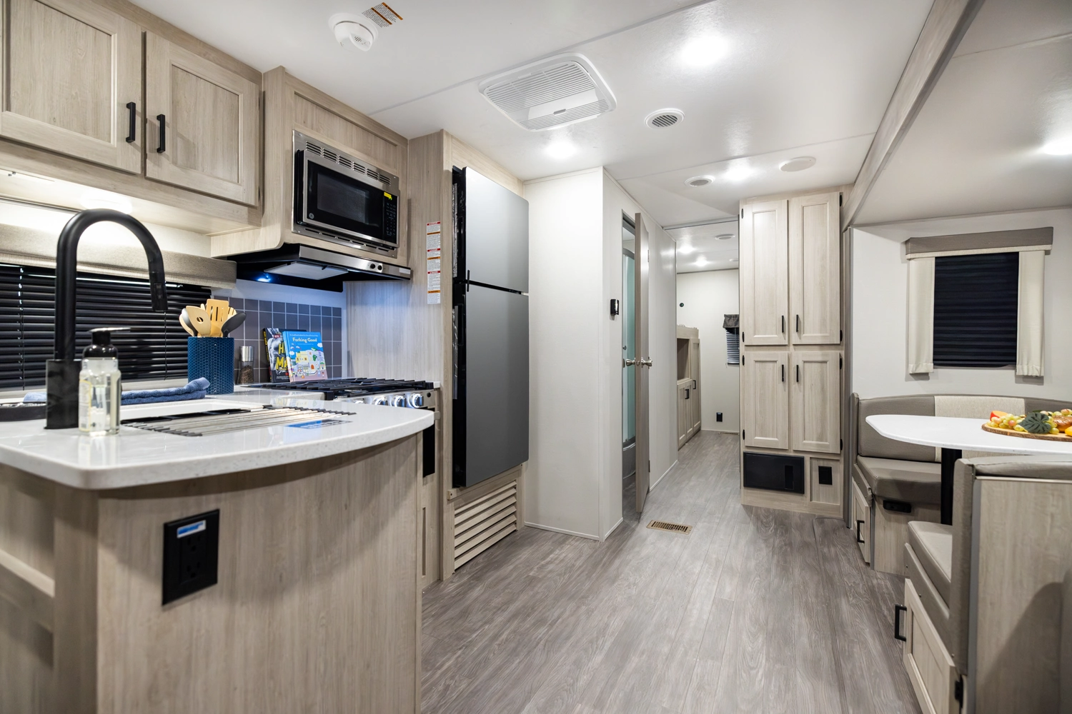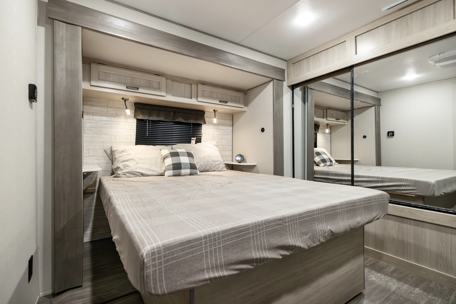 Built for large groups or multi-generational trips. Full bunkhouse and strong cargo capacity allow for loaded adventures. Durable frame and construction provide confidence for both boondocking and campground stays.