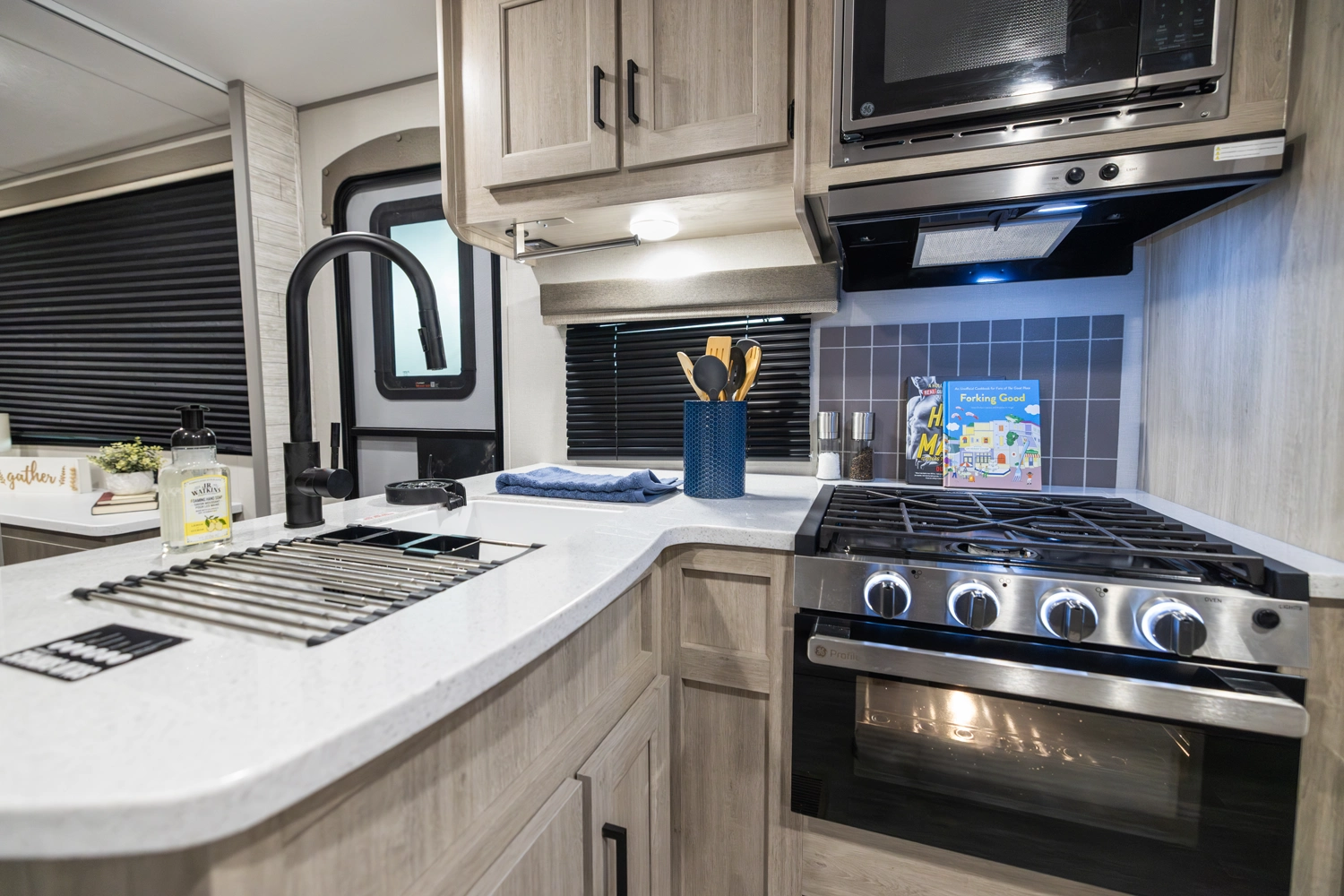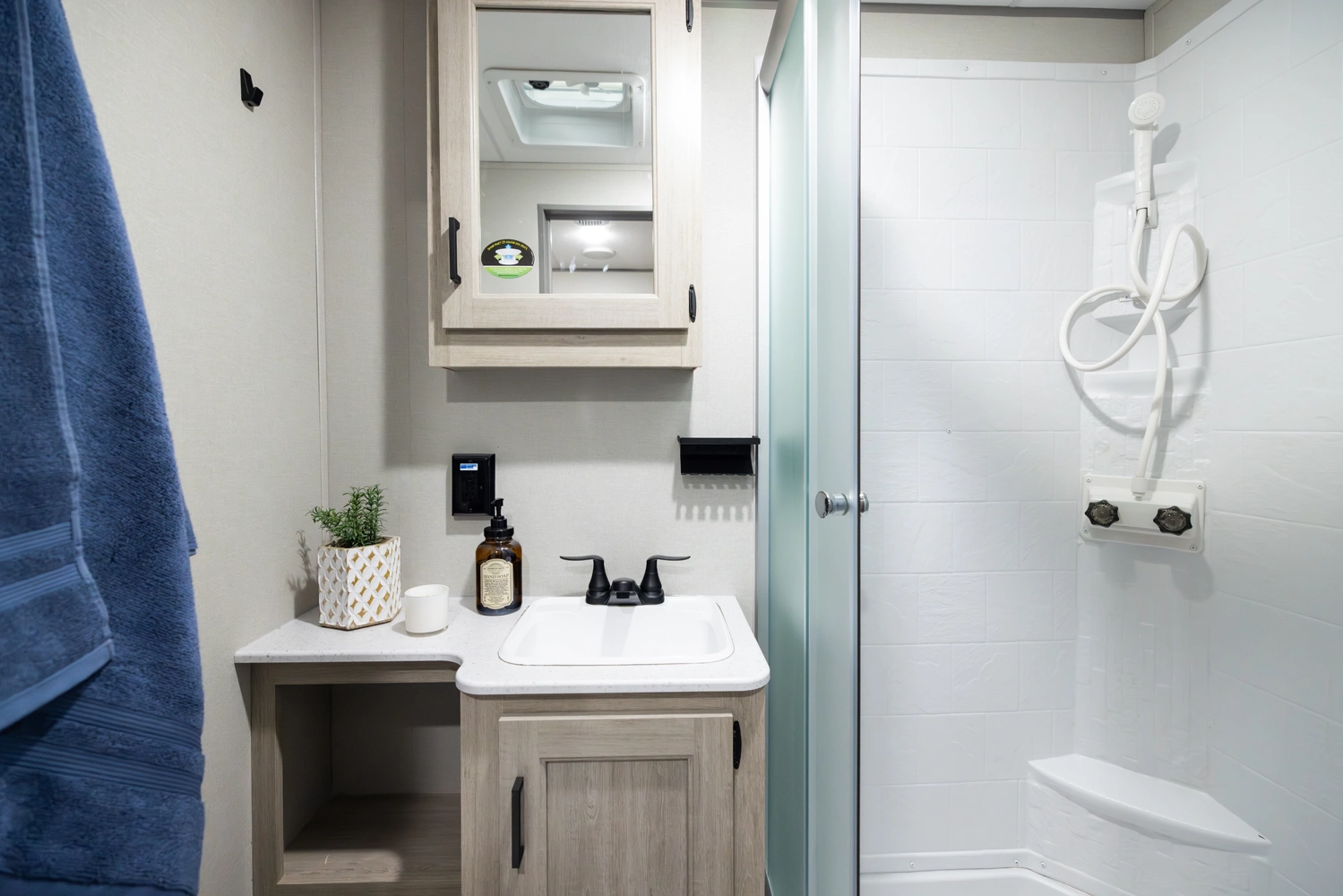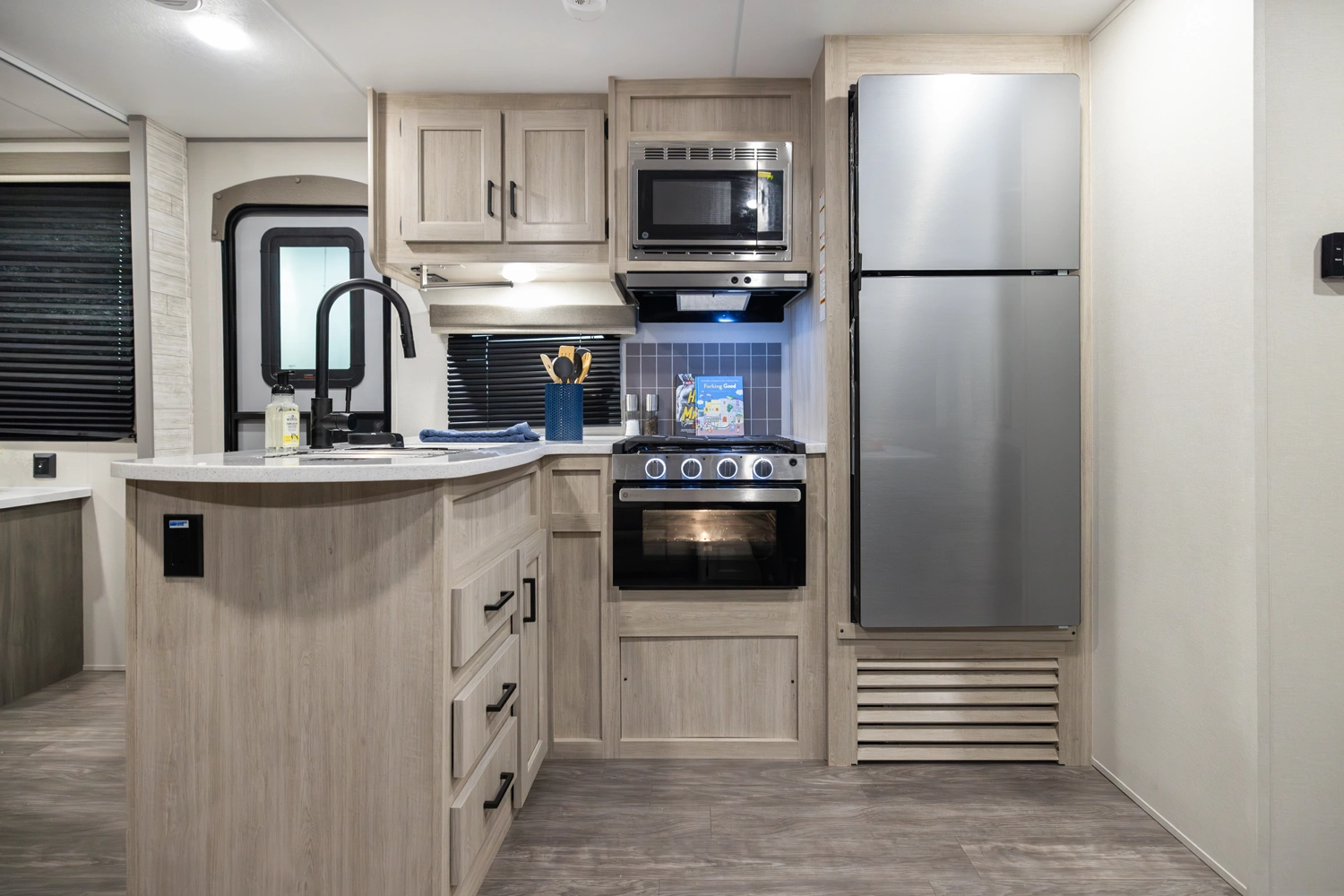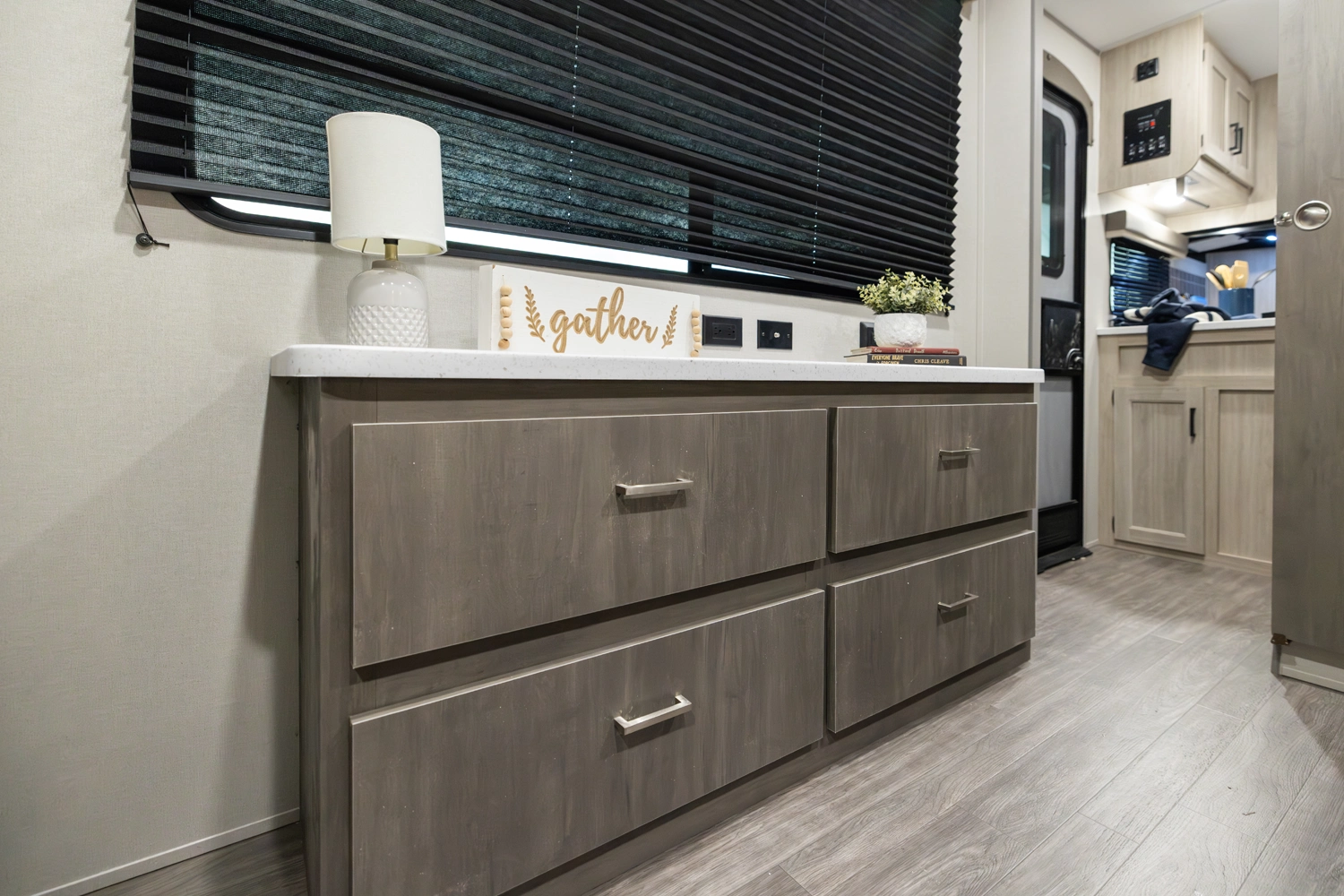 Built for large groups or multi-generational trips. Full bunkhouse and strong cargo capacity allow for loaded adventures. Durable frame and construction provide confidence for both boondocking and campground stays.