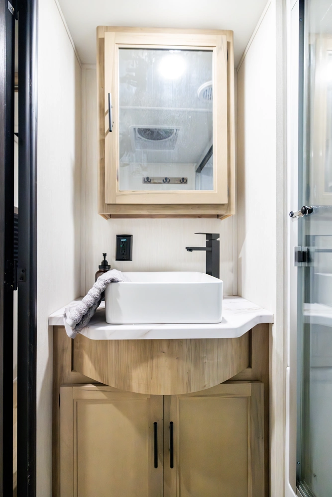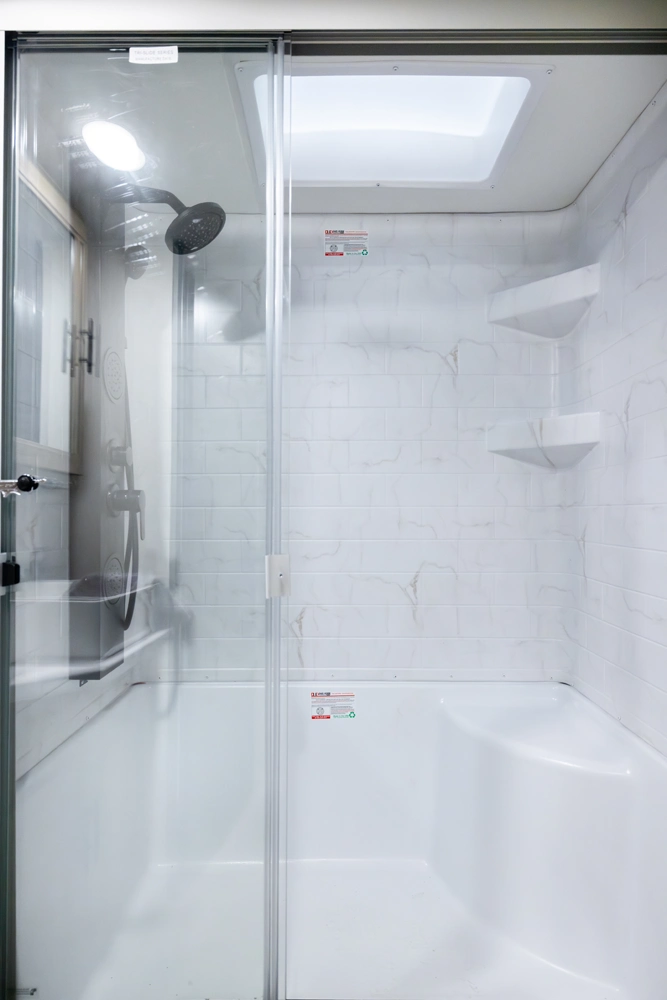 • Blackout Glass, Safety Slam, Friction Hinge Entry Door with Window and Shade Prep (N/A on LP models)