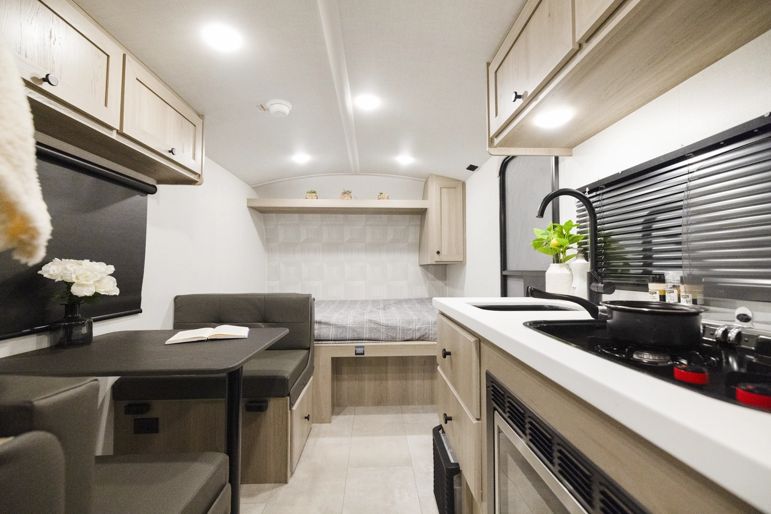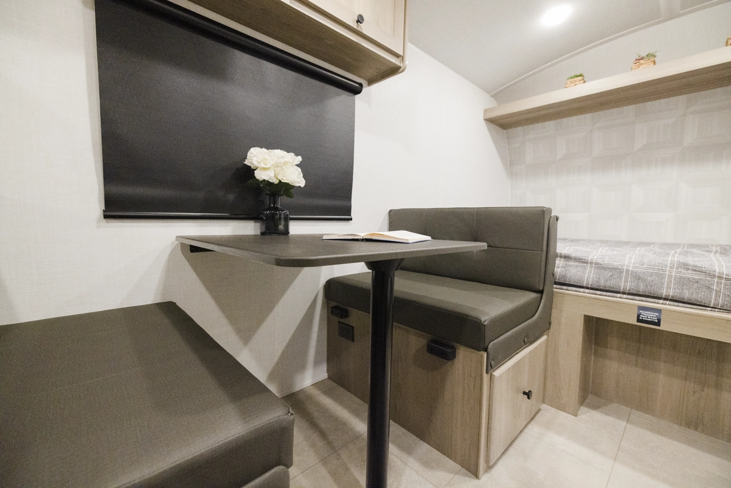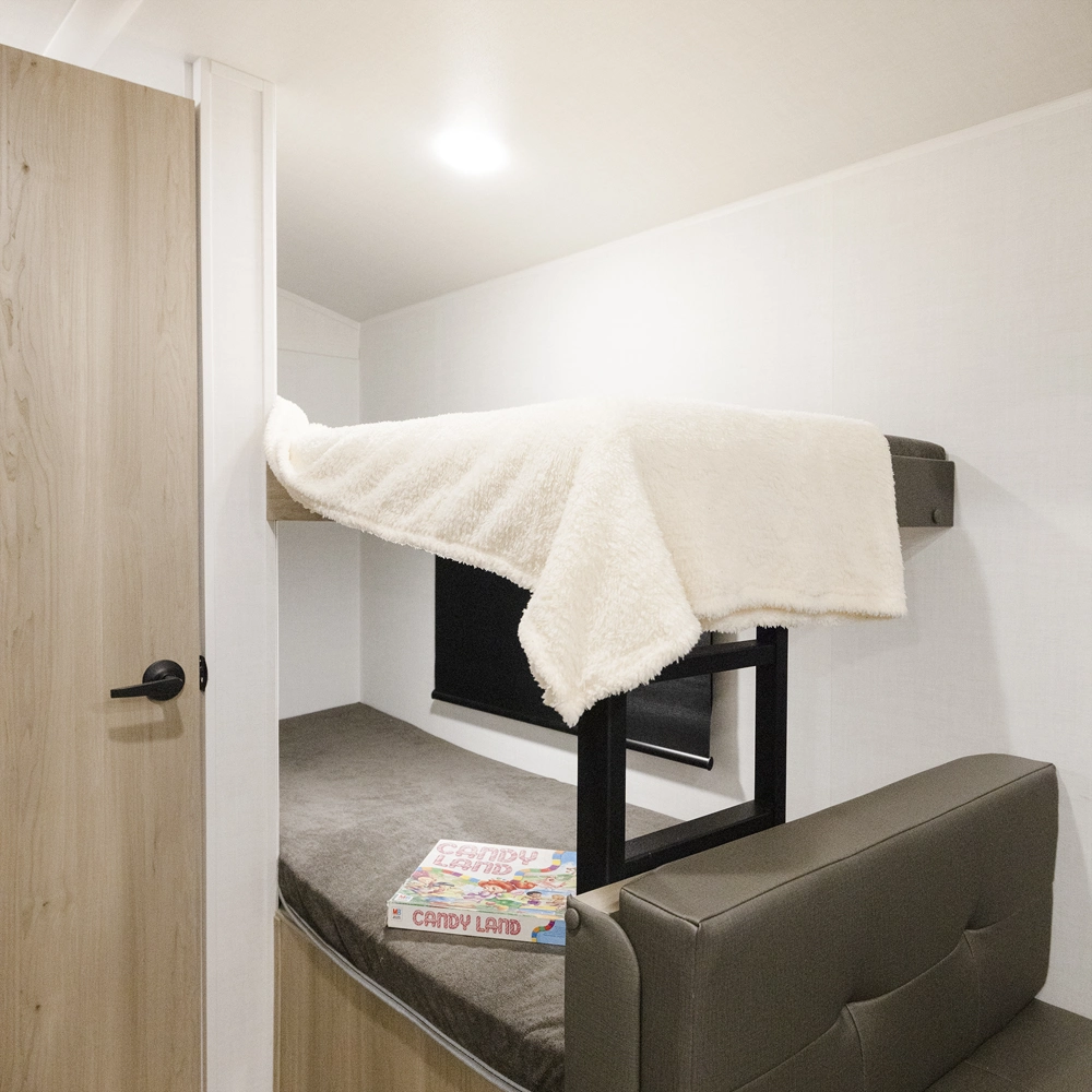 The 17LE is a lightweight, affordable bunkhouse camper built without sacrificing the quality Flagstaff is known for. Its compact design makes towing easy while features like durable 6 side aluminum framing and vacuum bonded walls and roof ensure long lasting performance. Perfect for first time buyers or budget conscious adventurers the 17LE Delivers reliable, high-quality camping in a nimble, easy-to-handle package.