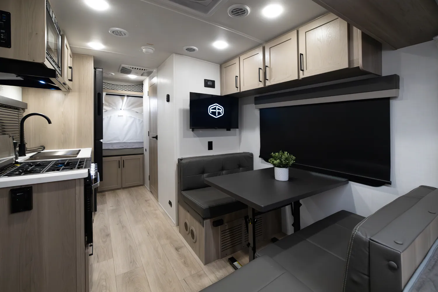 The 17E is Flagstaff’s first and only single-axle hybrid, making it both lighter and easier to tow than traditional hybrids without sacrificing features. Its smart design delivers comfortable sleeping, dining, and living spaces in a compact footprint. This floorplan is perfect for adventurers who want big camping experiences with minimal towing hassle.