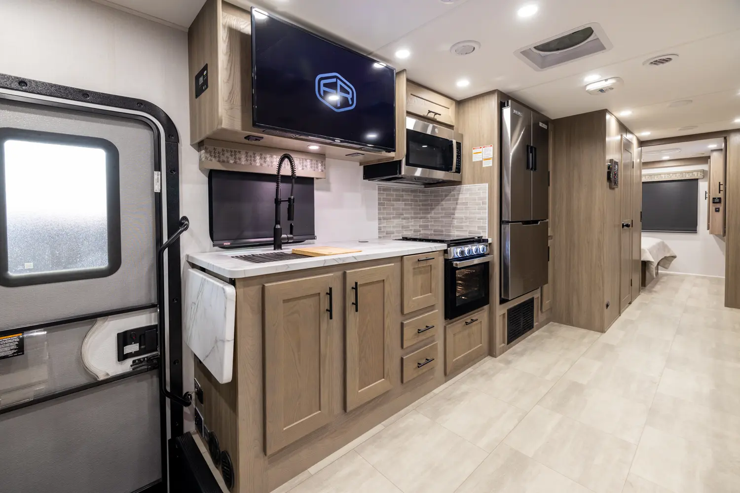 The FR3 Crossover Motorhome seamlessly blends the best of both worlds—offering the family-friendly livability and affordability of a Class C motorhome with the space, style, and convenience of a Class A. Designed for versatility, the FR3 is ideal for families and adventurers who want comfort and functionality in a sleek, easy-to-drive package.
