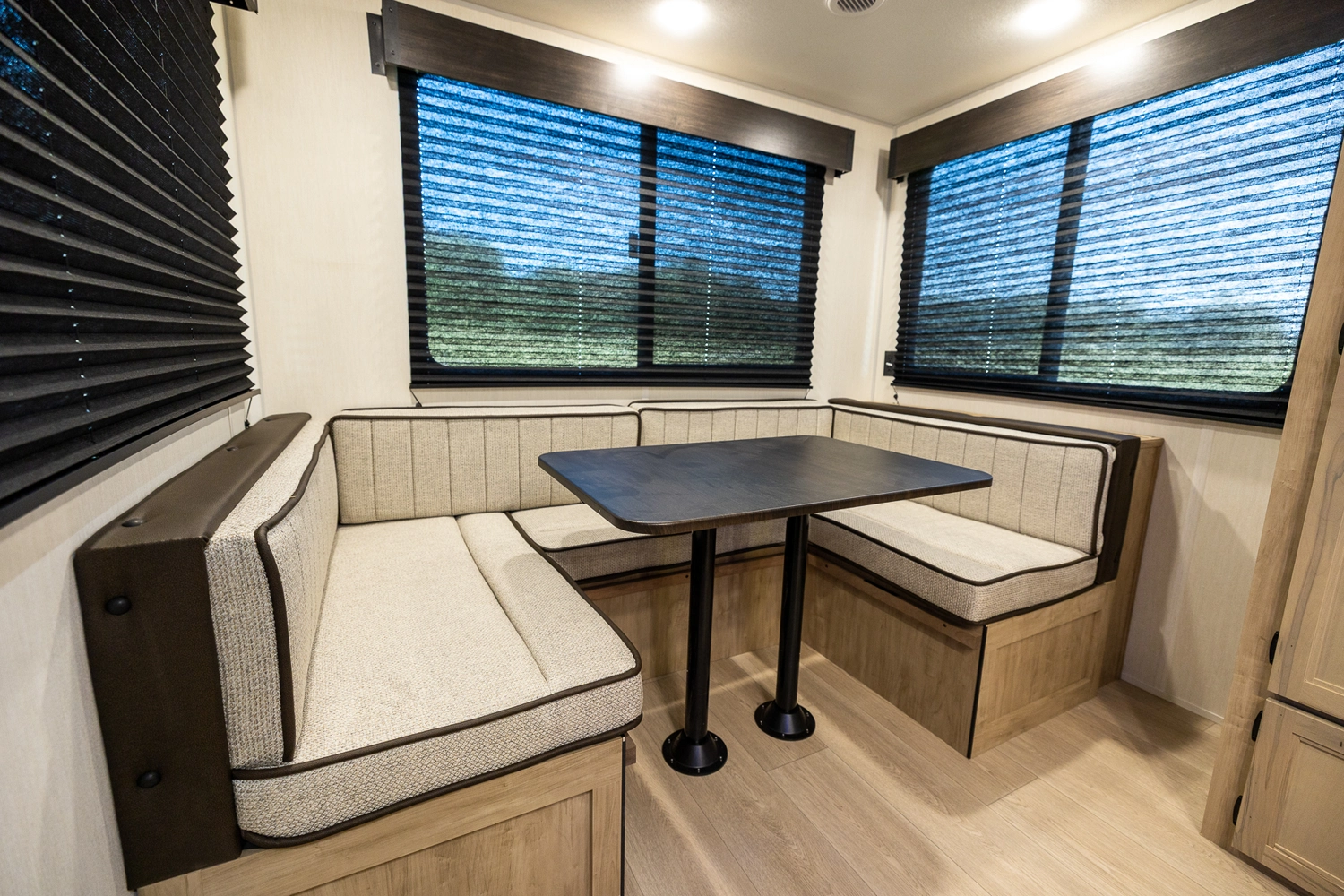 The Grey Wolf 20RDSE by Forest River is a stylish and functional travel trailer, perfect for couples seeking a compact and luxurious camping experience. Its open-concept design, with an extra-large U-shaped dinette and a huge rear window, creates a spacious and inviting atmosphere. The modern kitchen, full bathroom, walk-around queen bed, and ample storage space provide all the comforts of home. Experience the perfect blend of style, comfort, and convenience with the Grey Wolf 20RDSE.