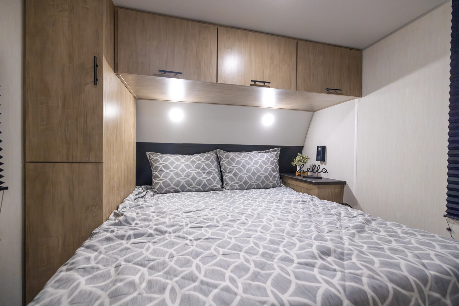 The Cherokee Grey Wolf 22RR by Forest River is the ultimate RV for outdoor enthusiasts. The spacious toy hauler garage, with a convertible rear ramp, provides ample space for toys and gear. The outdoor kitchen, shower, and patio area offer a luxurious outdoor living experience. Inside, you'll find a comfortable bedroom with a walk-around queen bed and a well-appointed bathroom. The modern kitchen, with its black stainless steel farm sink and sink cover, is perfect for cooking and entertaining.