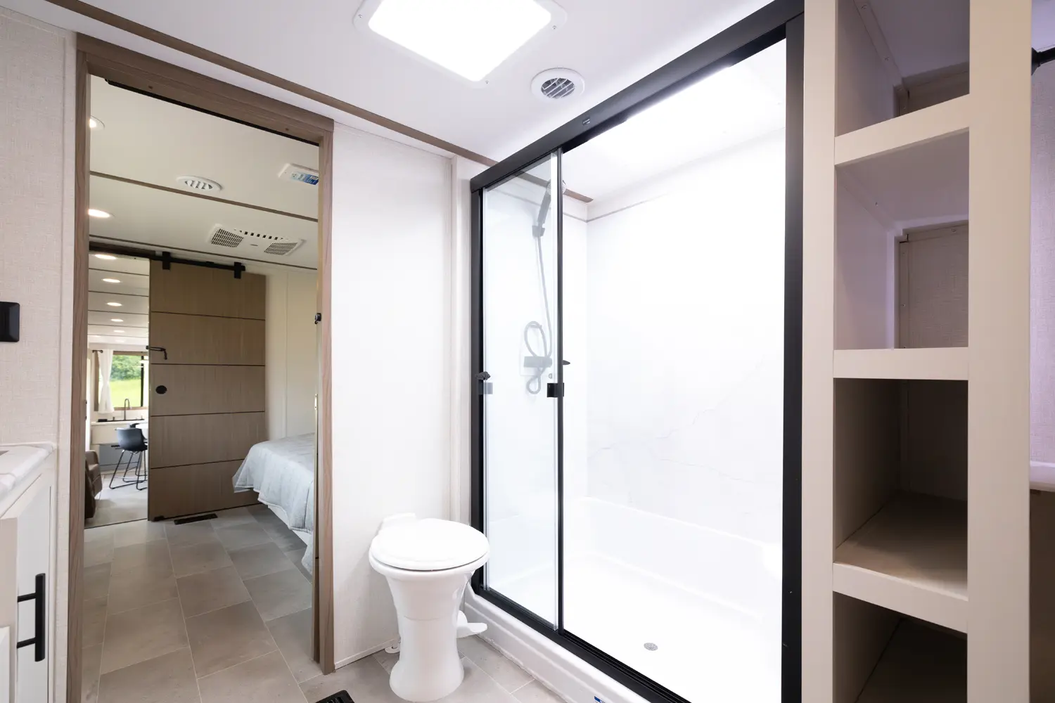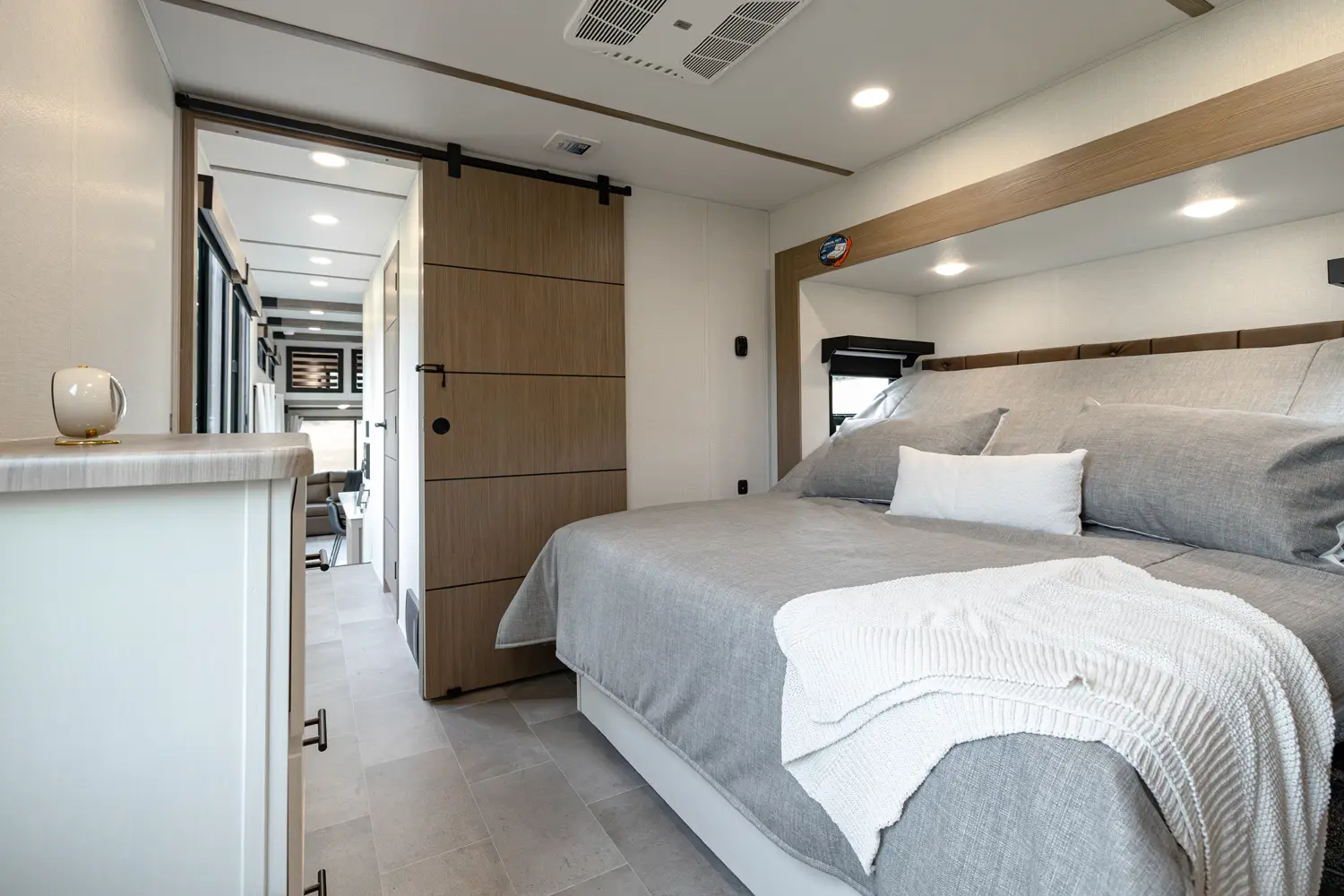 • 110 Outlet & 12V Charging Ports Beside Bed