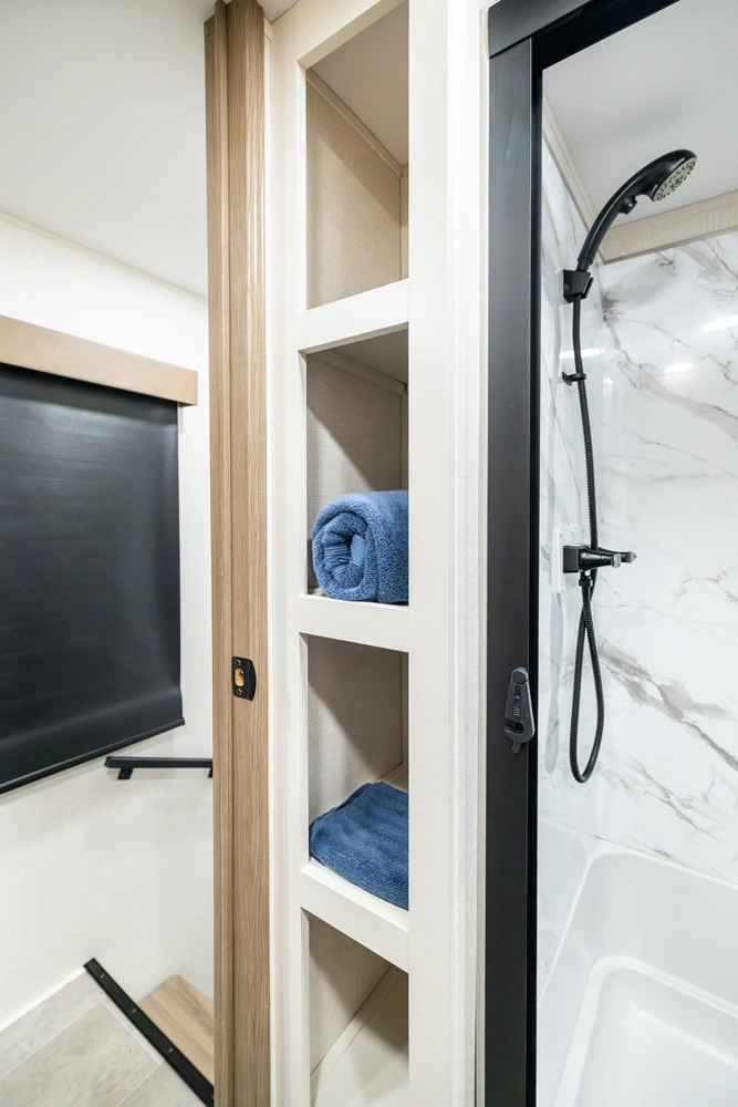 • 110 Outlet & 12V Charging Ports Beside Bed