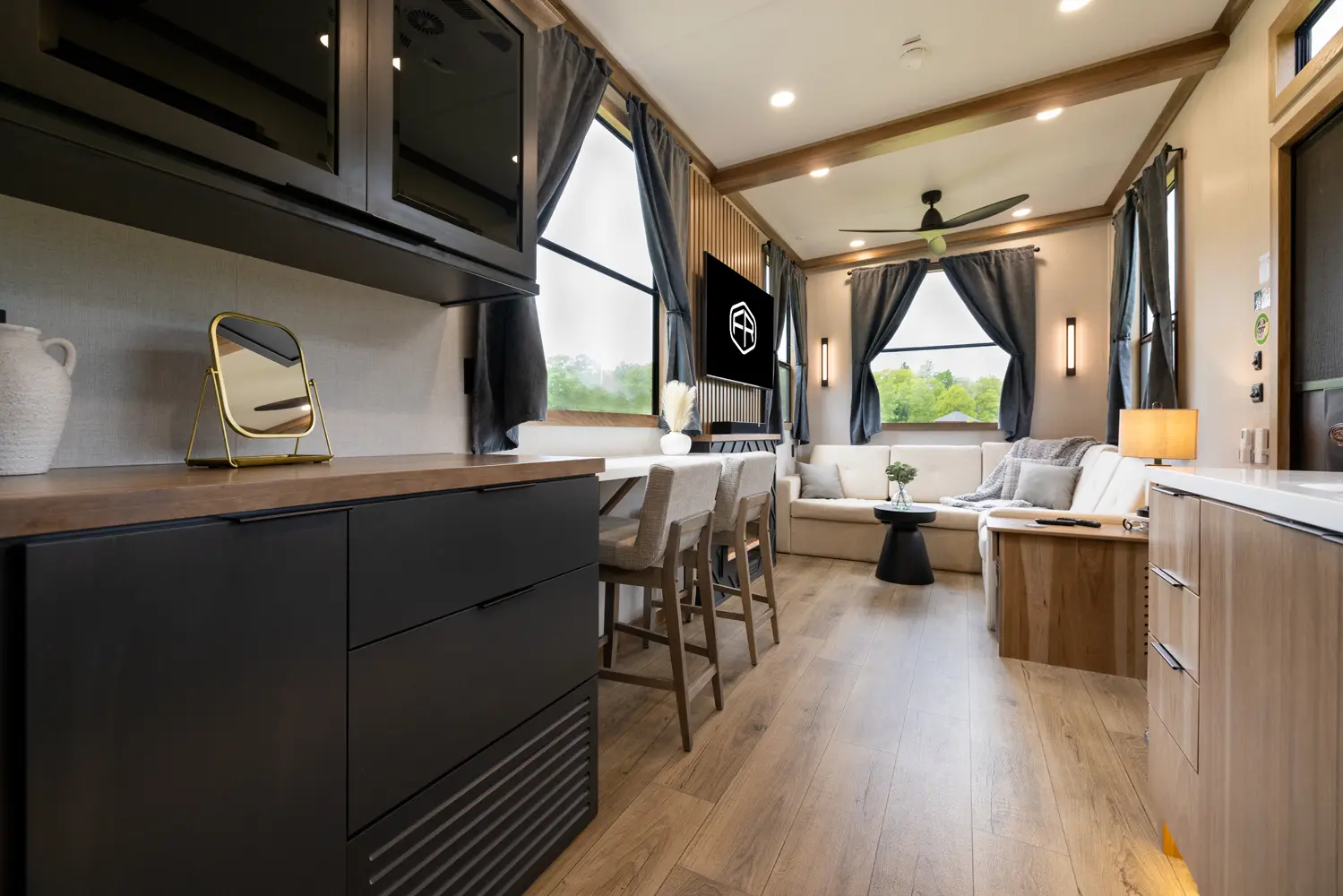 The Sequoia sets a new standard with its innovative slide-less floorplan, boosting efficiency and reducing maintenance. Inside, the galley kitchen features premium appliances, solid-surface countertops, and hardwood cabinetry. A spa-inspired bath, dual-closet bedroom, and expansive storage highlight its modern and functional design, delivering luxury and innovation in every detail.