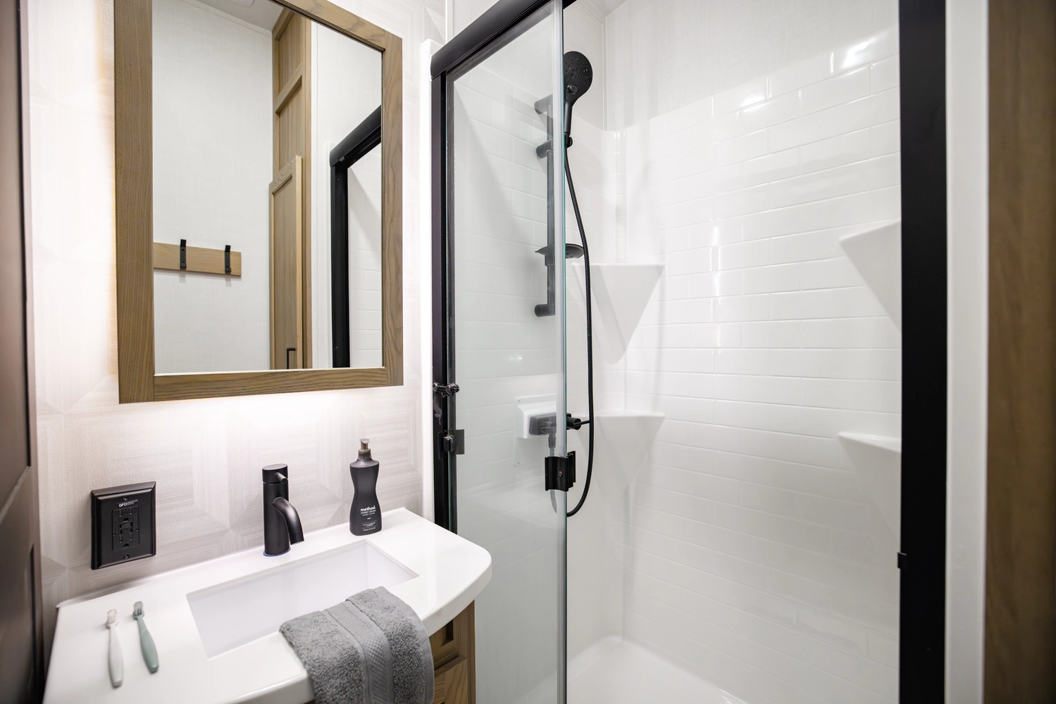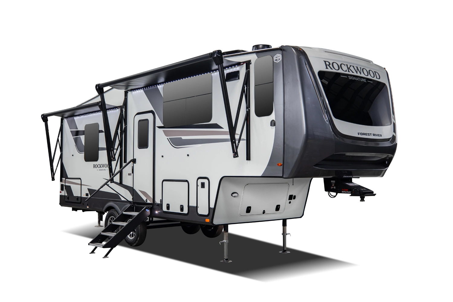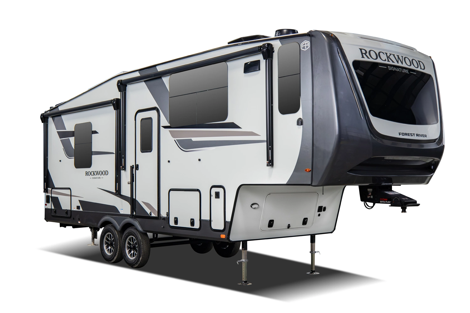 Experience the spacious and smart design of the Rockwood 290SFK fifth wheel. This full profile floor plan features a versatile front kitchen with 86" interior height, abundant counter space and storage, a comfortable living area with theater seating and entertainment center, in a private king size bedroom. With slide outs to expand your space, residential-style comforts throughout, and quality construction, the 290SFK makes every trip relaxing and enjoyable.