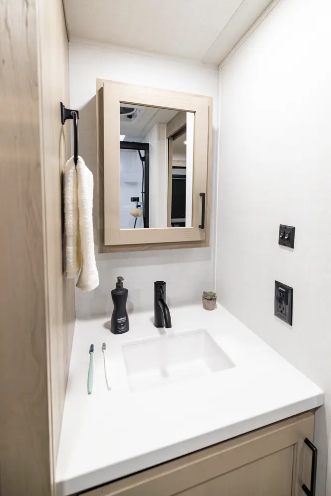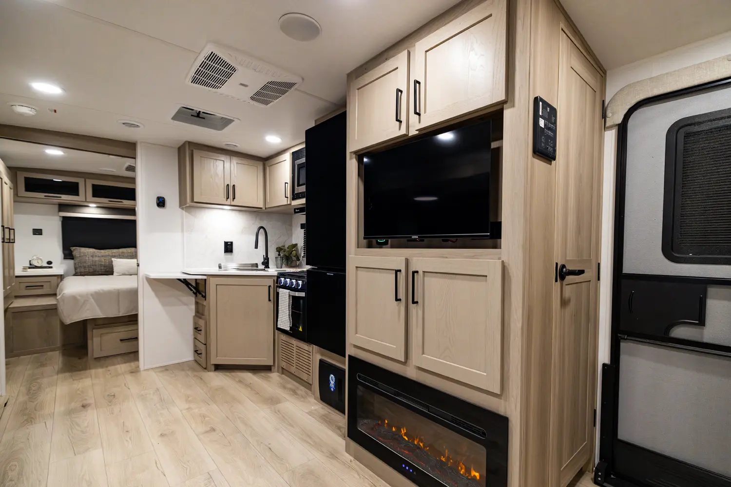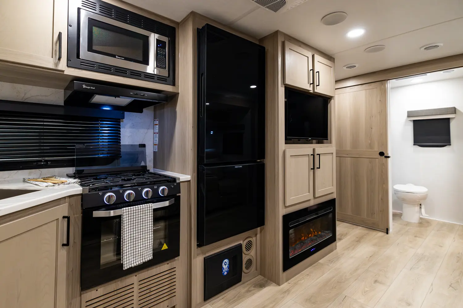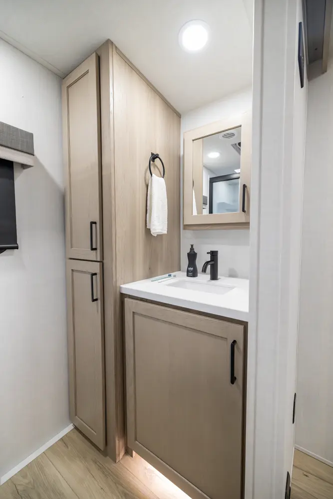 • Platinum Package: Auto Leveling, Frameless Windows, 1800W Inverter, MORryde Strut Assist Entry Step, Dual 30 LP Tanks