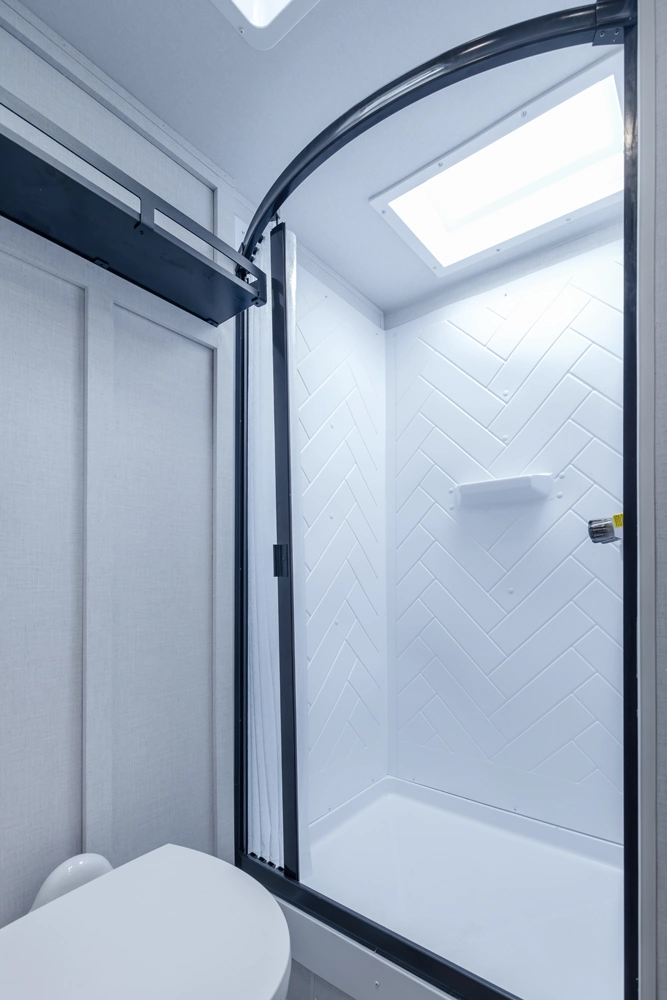The 27RK stands out with its spacious kitchen and panoramic campsite windows. You will love the Versa-Lounge, which can reconfigure and customize according to your needs—and conveniently below is the Stow N Go Storage! This model also provides a fireplace (heater) and 11 CU. FT. refrigerator making you feel right at home.