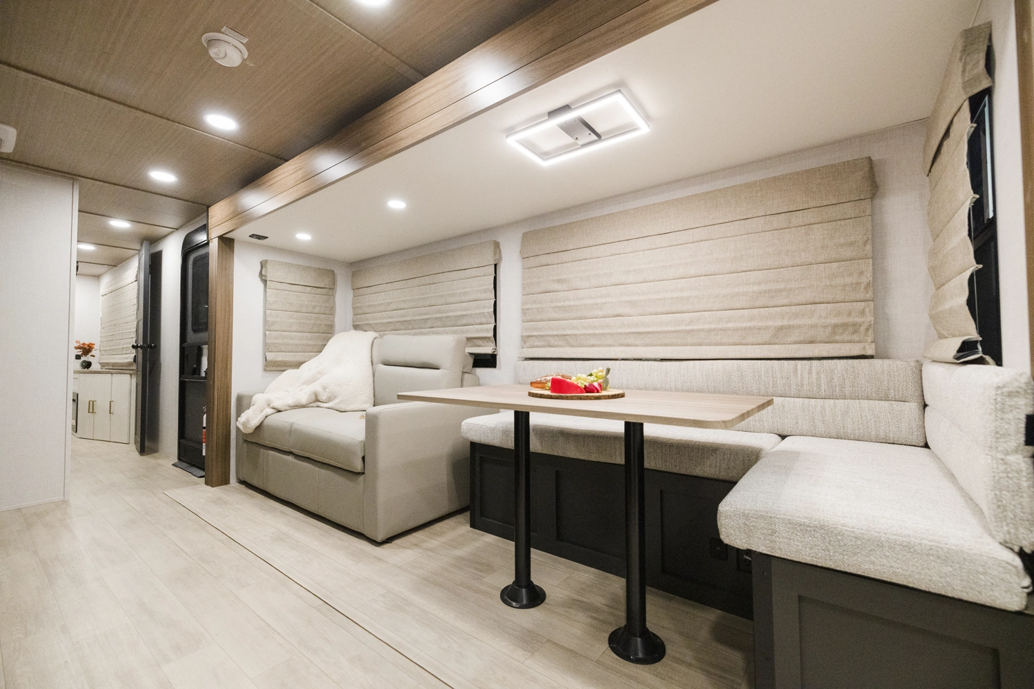 This is another floorplan unlike any other, the 3400SB has a brand-new mid-bunkroom, rear-kitchen, and spacious master-bedroom slide. This camper truly has something for everyone with limitless opportunities to the space at hand. The 3400SB is a great representation of how we stretch the limits here at Vibe.
