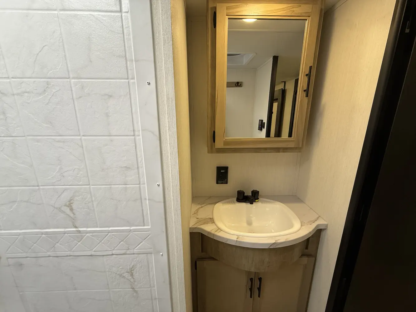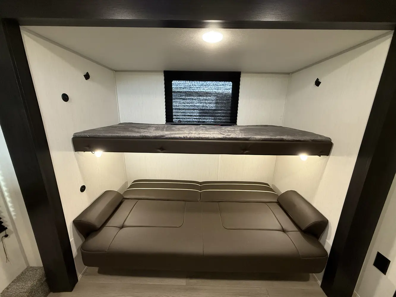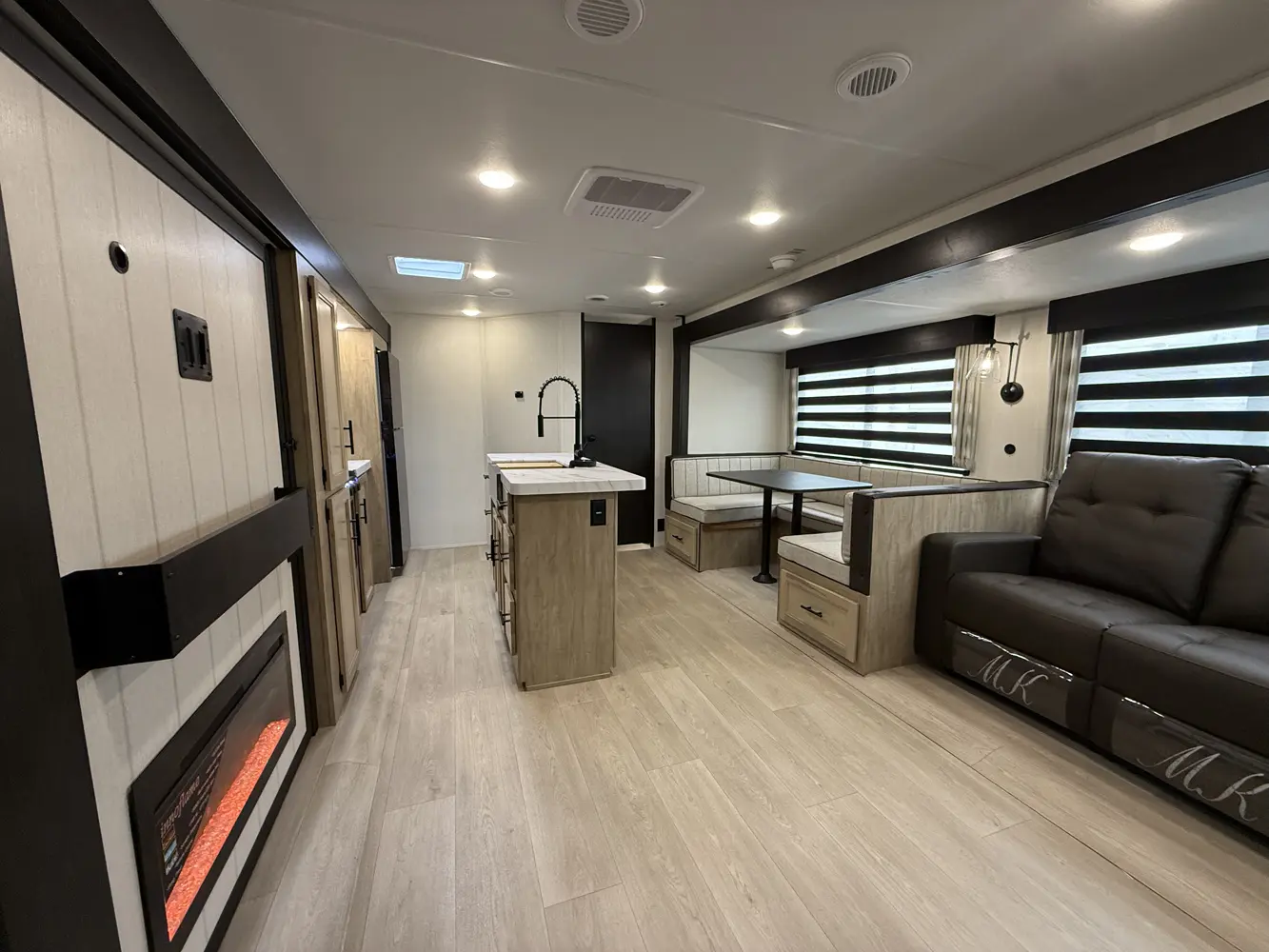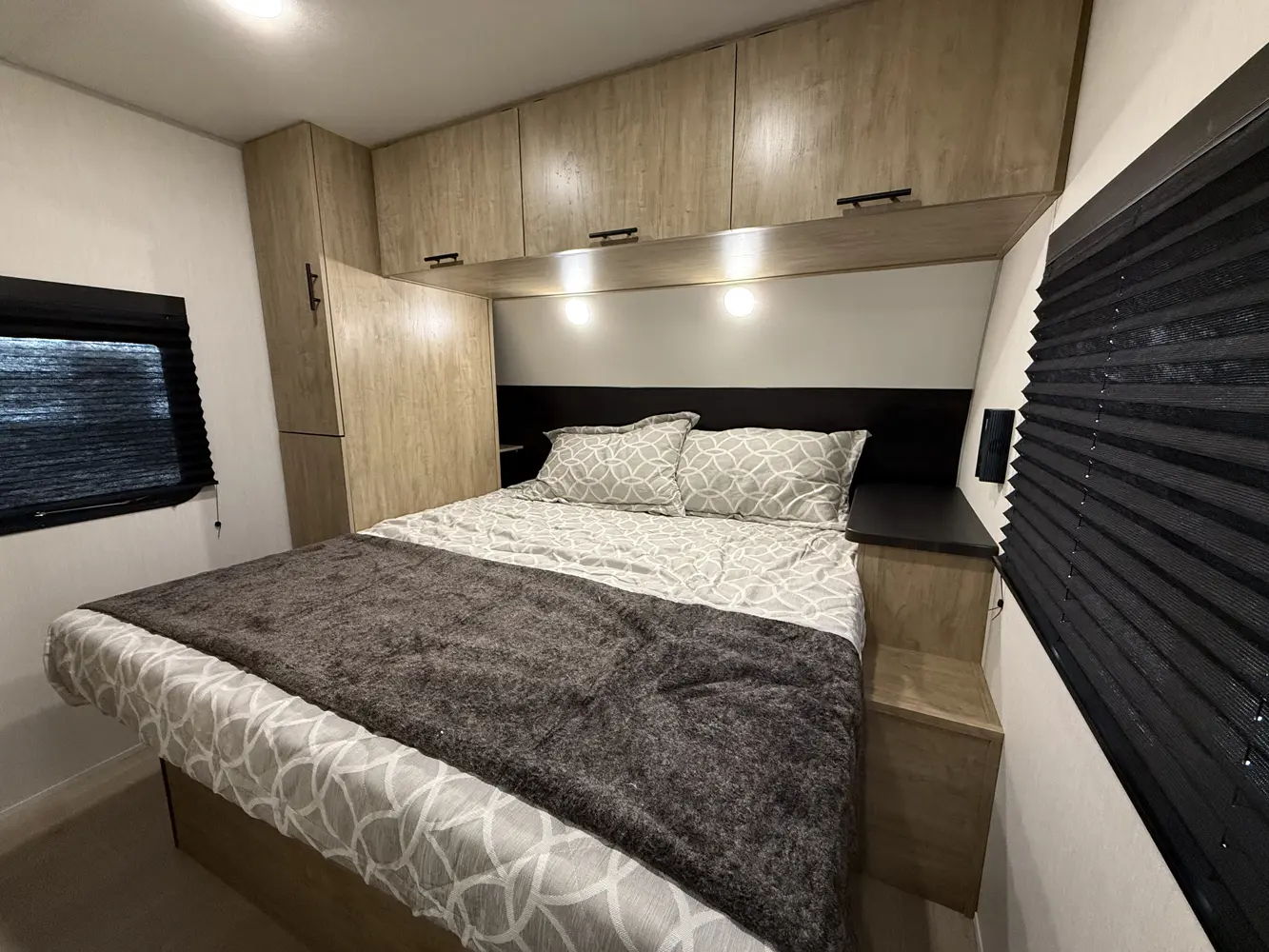 • Cherokee Black Label Wolf Den (Deep Tinted Frameless Automotive Glass Windows, High Gloss Gel Coat Exterior Sidewalls, Multicolor Reading Lights, Pillowtop Mattress Upgrade, Solid Surface Countertops, Thermo Foil Arctic Insulation)